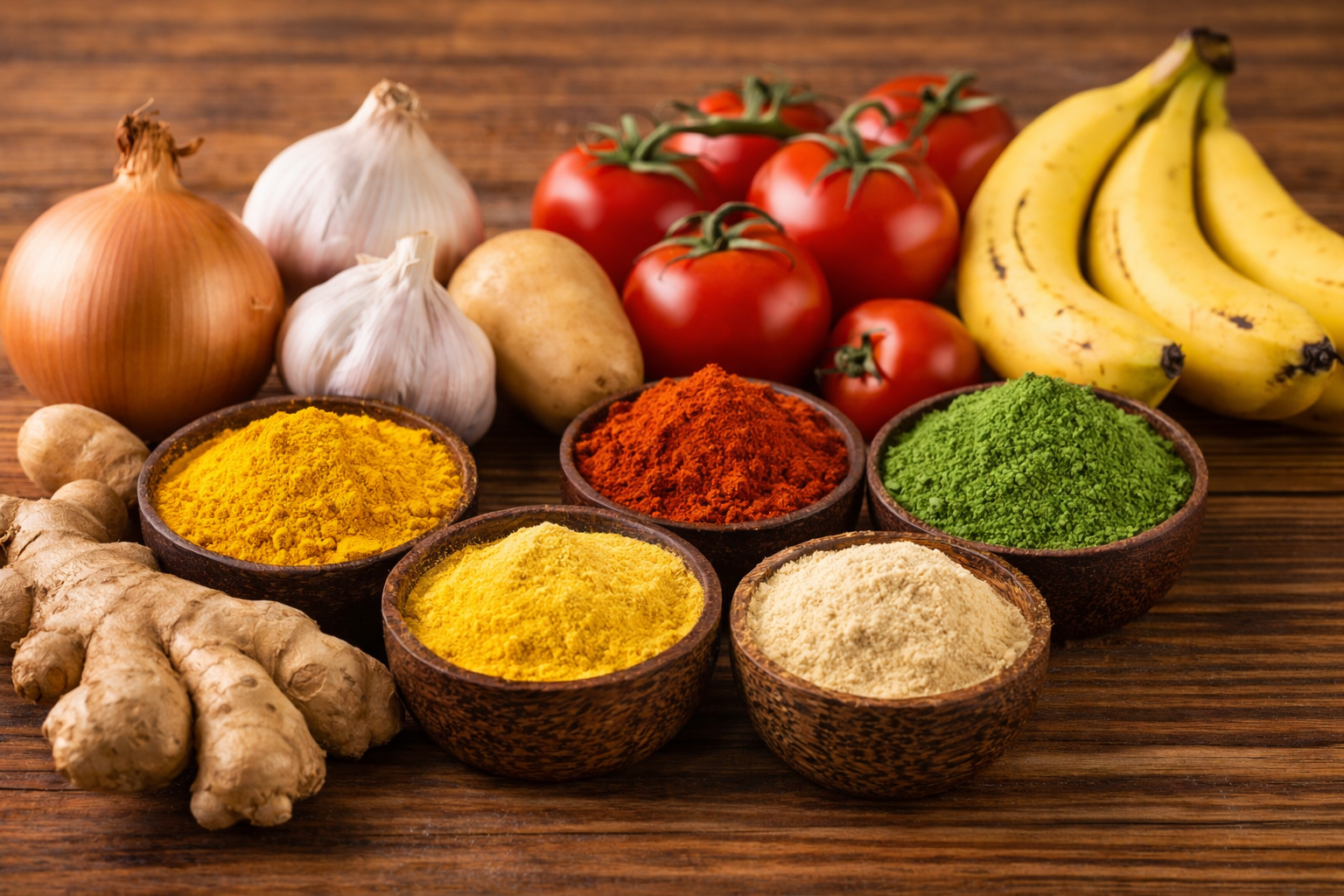 Our range of natural powders includes onion, potato, garlic, tomato, ginger, and banana powders, all made from carefully selected, high-quality produce. These powders are processed through hygienic drying techniques to retain their natural flavor, aroma, and nutritional value. Widely used in cooking, baking, seasoning, and health applications, they offer convenience, long shelf life, and consistent quality. Free from artificial additives and preservatives, our powders are ideal for modern kitchens, food industries, and health-conscious consumers seeking pure and versatile ingredients.